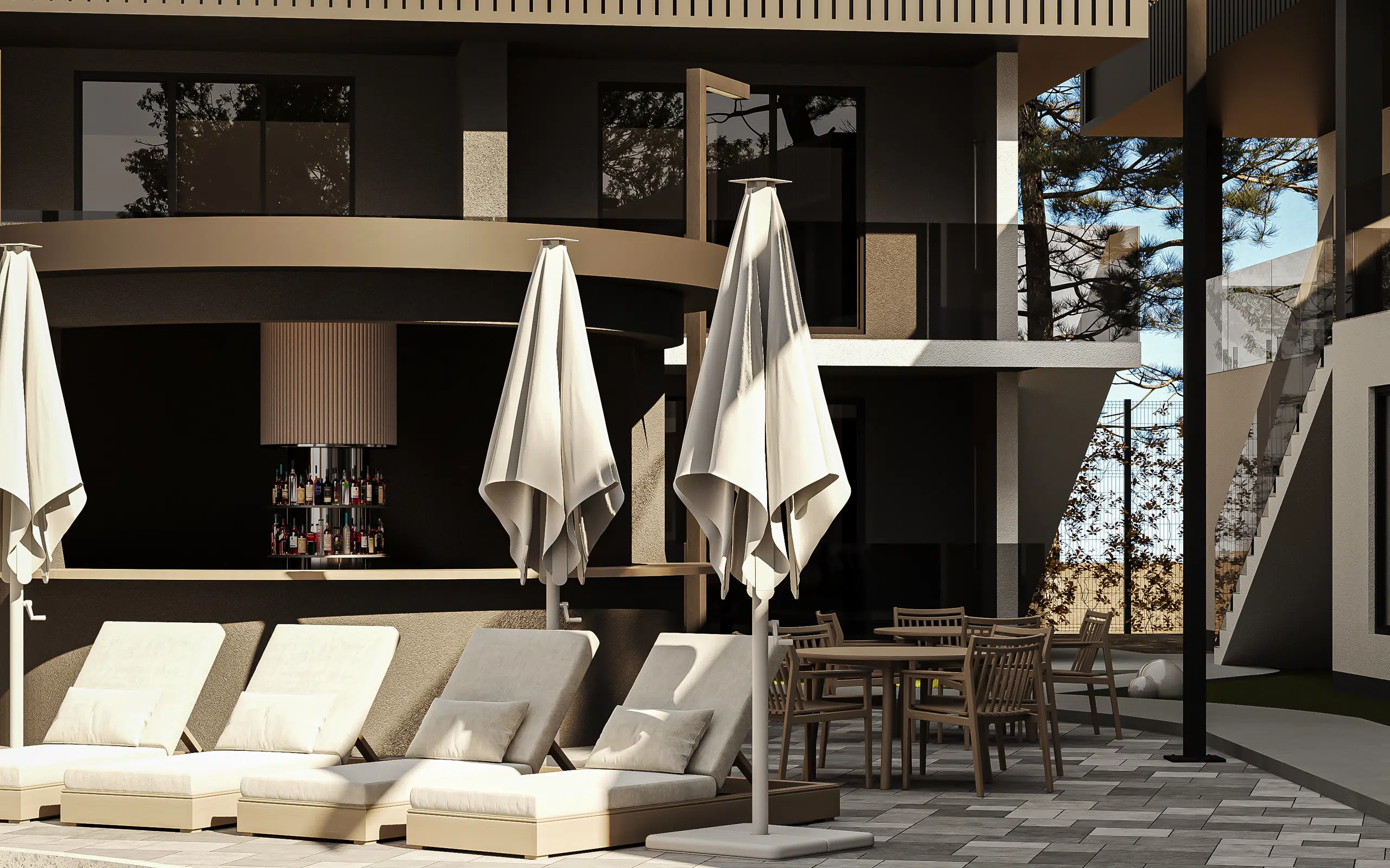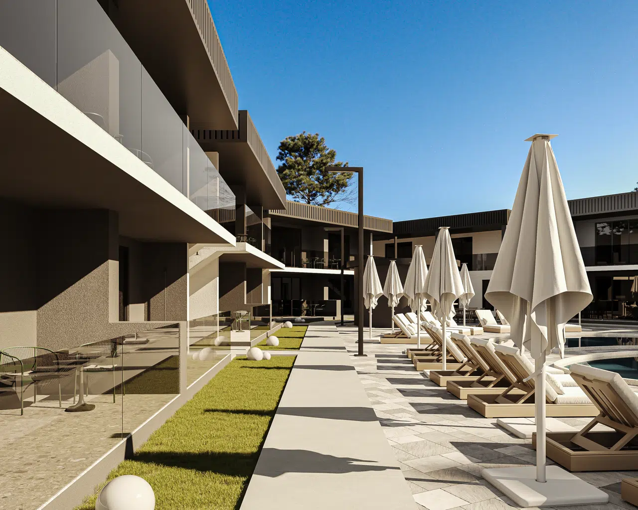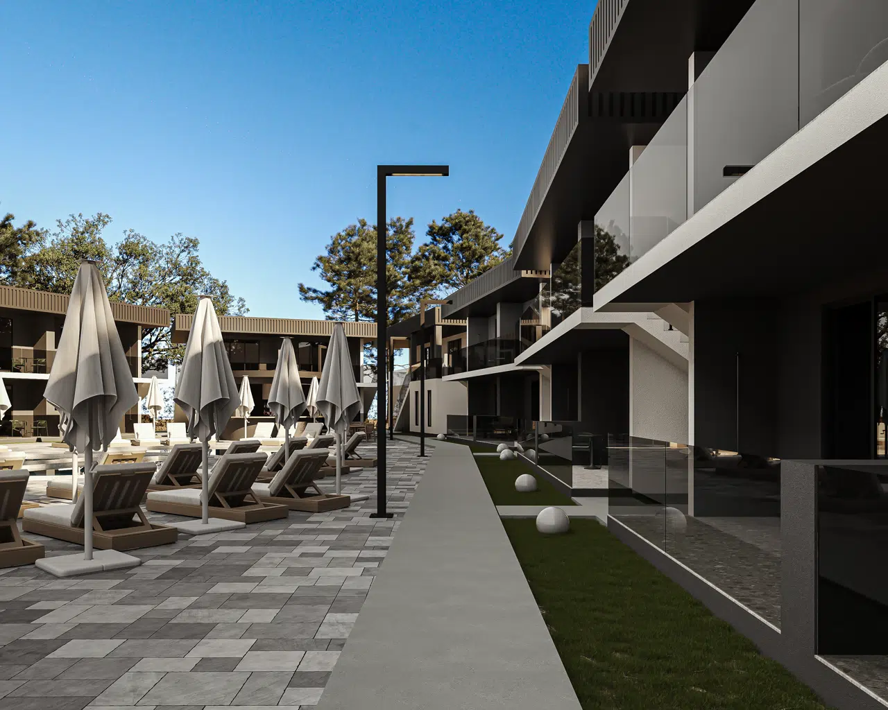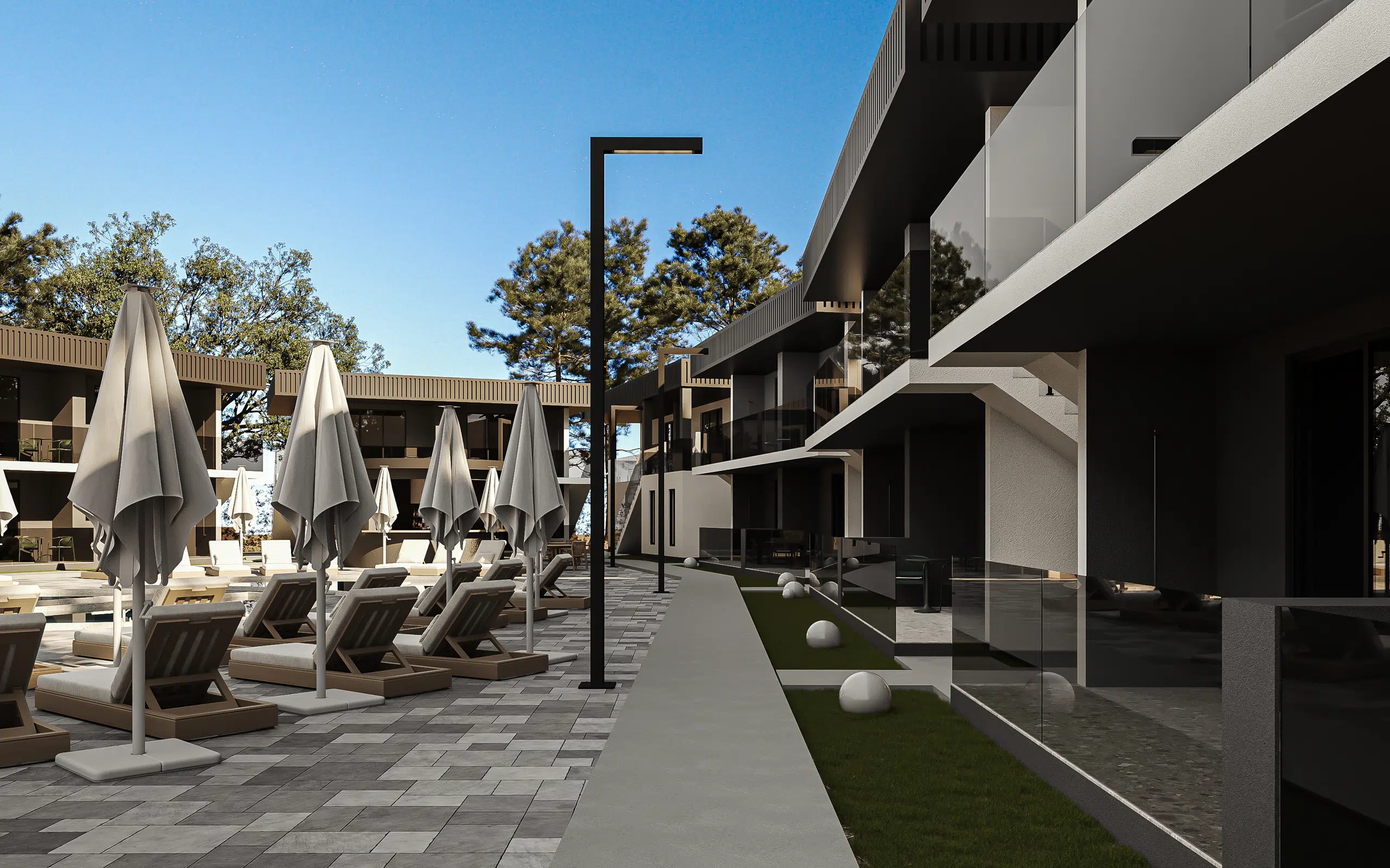 Комплекс поєднує дизайнерську архітектуру, комфортні апартаменти та атмосферу спокою, ідеально підходить для сімей з дітьми, пар і тих, хто шукає релакс.