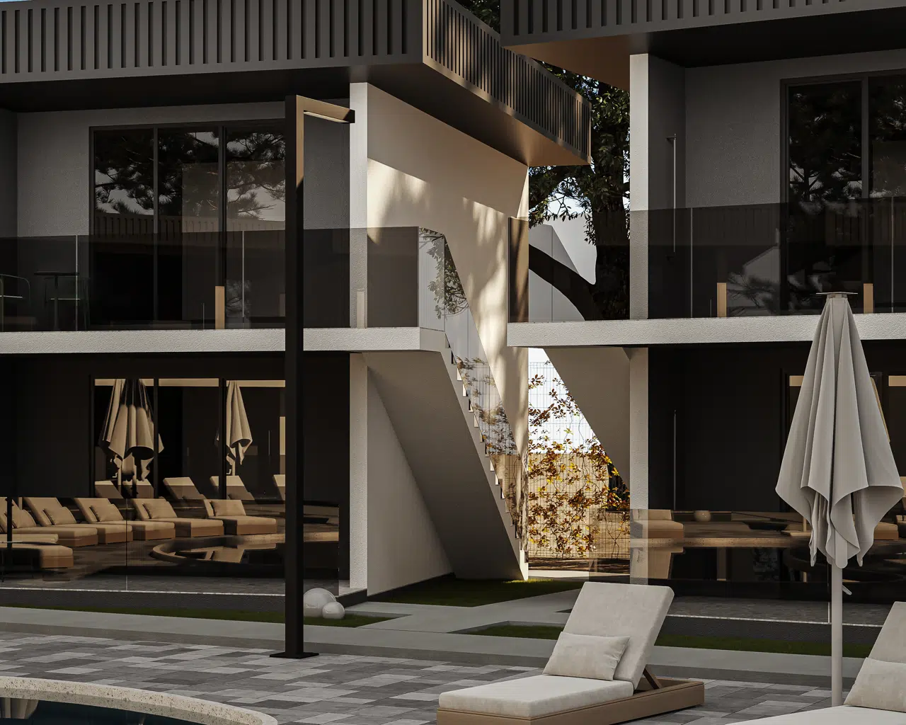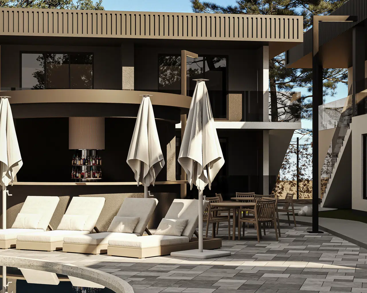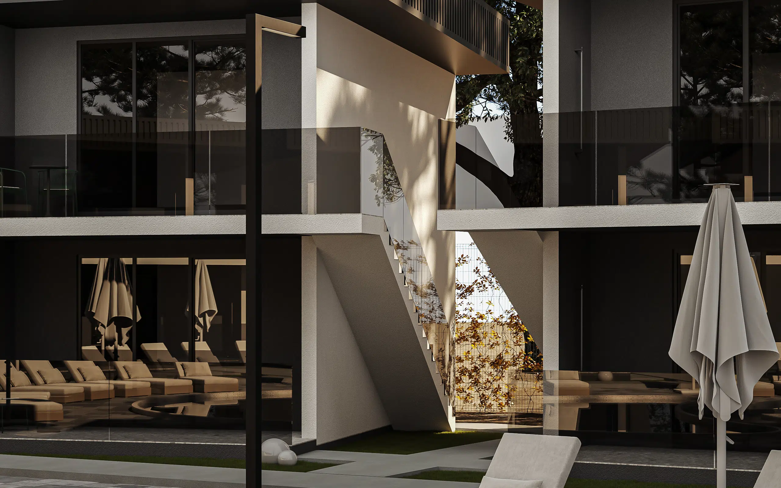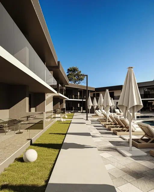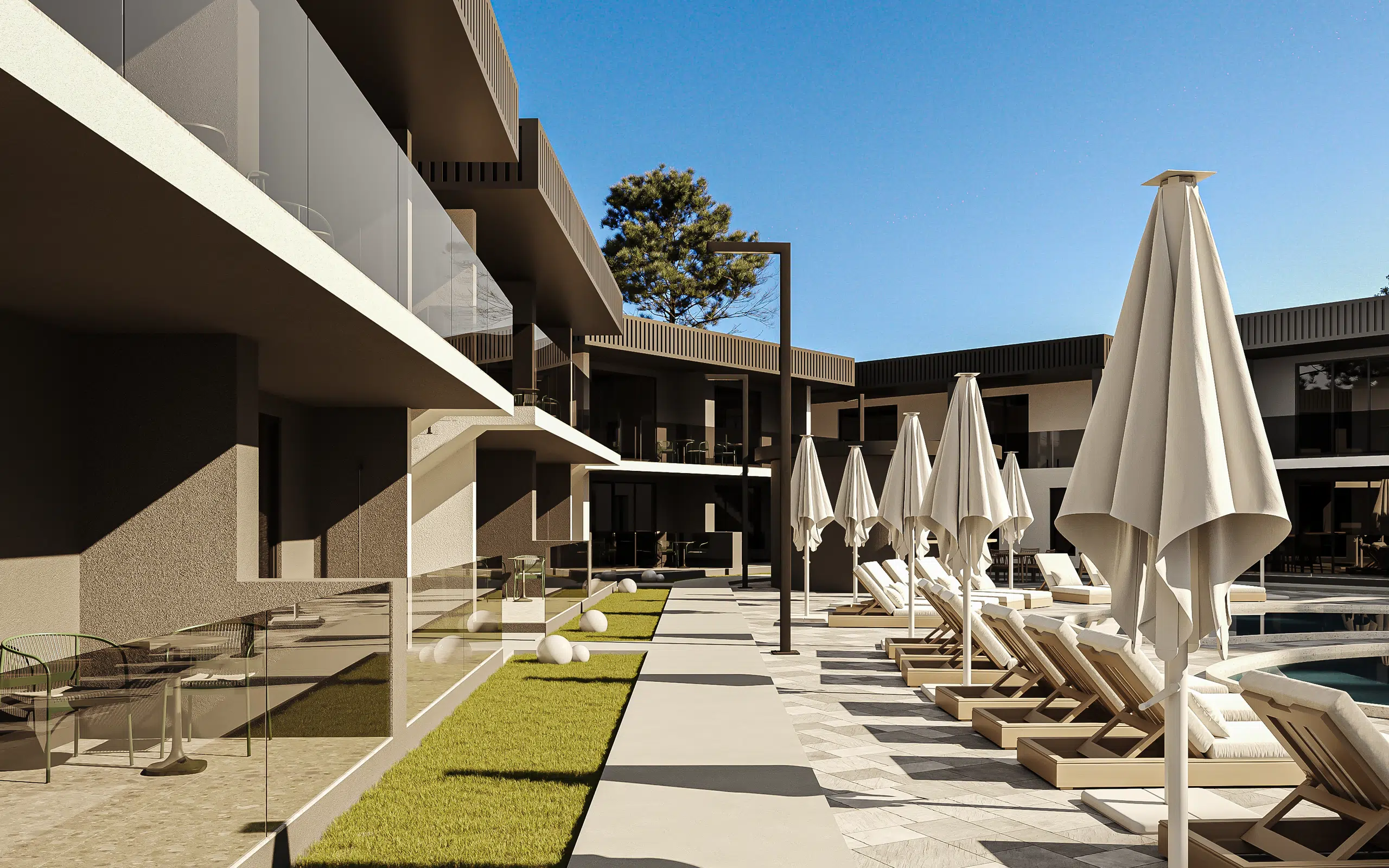 Комплекс поєднує дизайнерську архітектуру, комфортні апартаменти та атмосферу спокою, ідеально підходить для сімей з дітьми, пар і тих, хто шукає релакс.